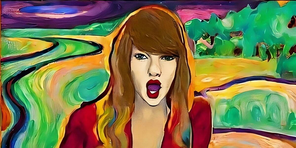 Taylor Swift counting backwards in the style of Edvard Munch | Hugging Face by Stable Diffusion 2.1