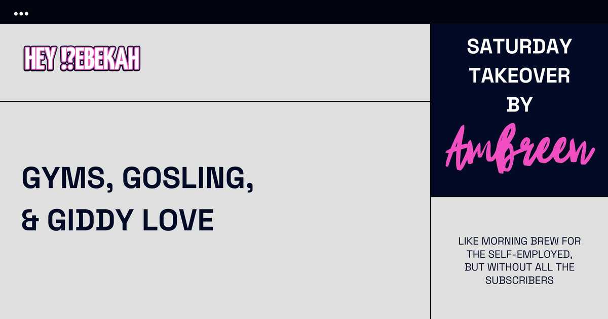 This week's Saturday Takeover of Hey Rebekah will show you exactly where the LOL in Hey Rebekah come from. This edition includes Gyms, Gosling, and giddy love.