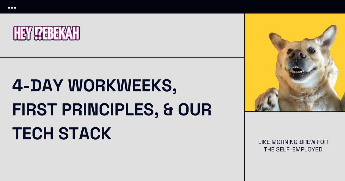 In this edition of Hey Rebekah we explore what all the 4-day workweek fuss is about. Plus the concept of first principles to yield a 13,000% ROI! 👏🏽 🤯
