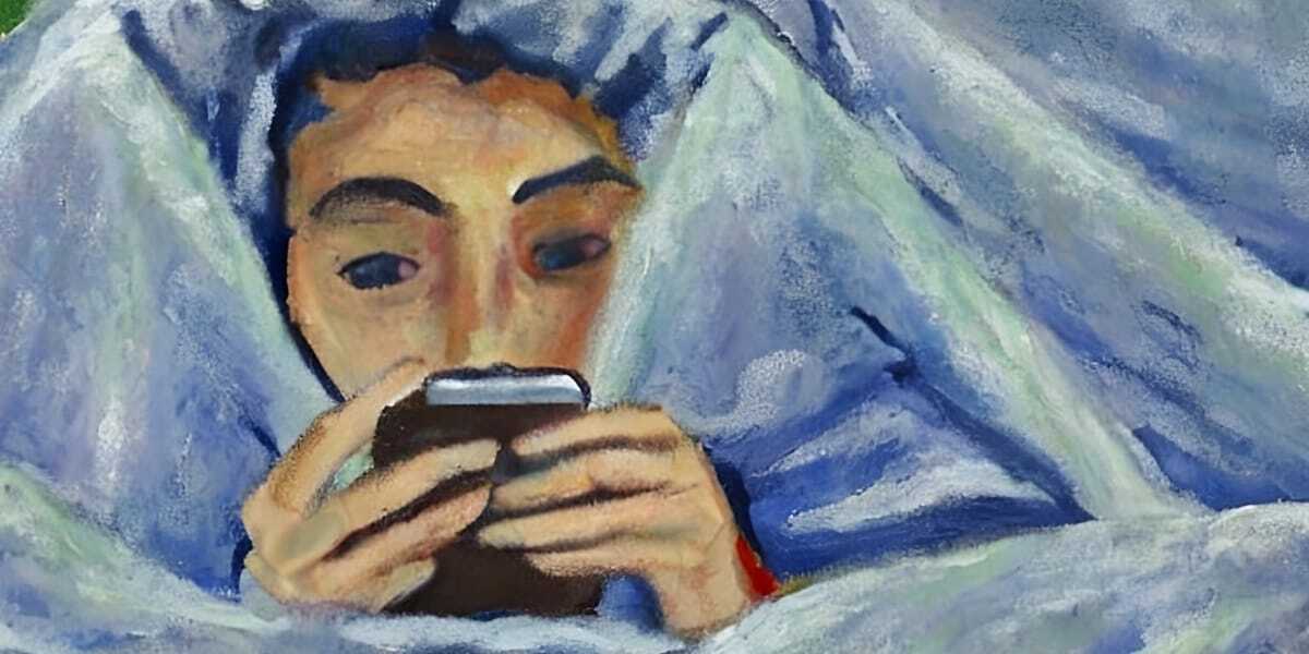 An illustration of a student, studying and hiding under a blanket with a cellphone in the style of Monet | Hugging Face by Stable Diffusion 2.1