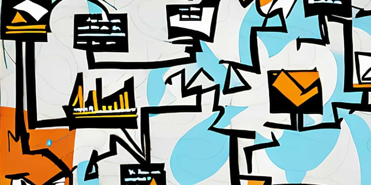A business process flowchart in the style of Picasso | DreamStudio by Stable Diffusion 2.1-768