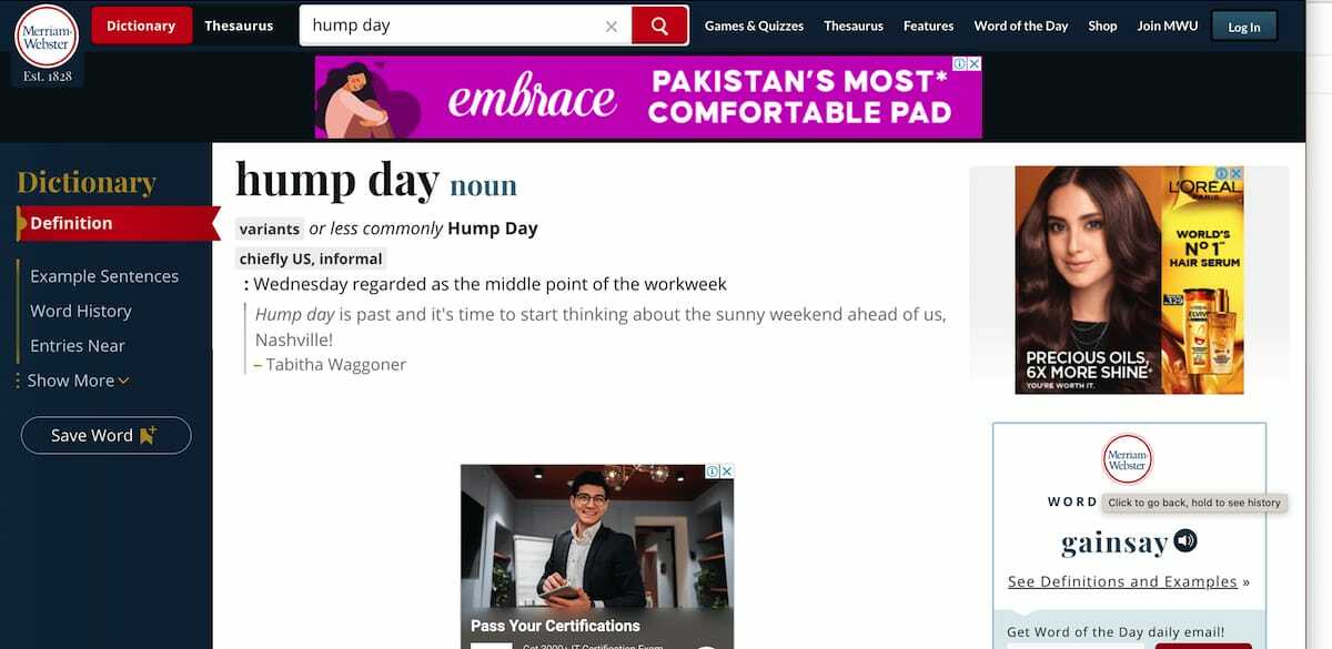 Hump Day is about acknowledging the week's transition from the MT phase to WTF. It's an expression used in the U.S., but we believe the hump needs to be on the approved proliferation list.