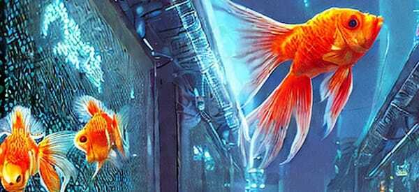 A high tech utopia of goldfish in a cyberpunk style by Stable Diffusion 2.1