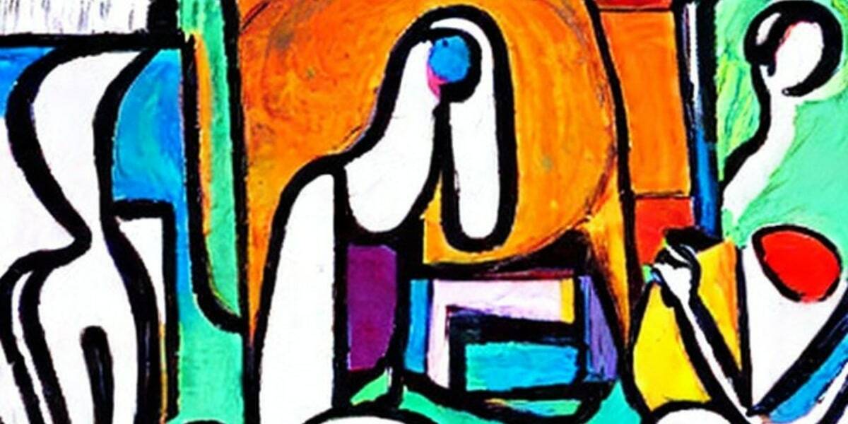 Storytelling in Front of the Camera in the Style of Picasso | Hugging Face by Stable Diffusion 2.1